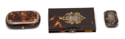 A Group of Three Tortoise Shell Articles Largest length 4 1/4 inches.