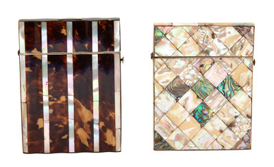 Two Victorian Mother-of-Pearl and Tortoise Shell Calling Card Cases Largest height 4 1/8 x width 3 1/8 inches.