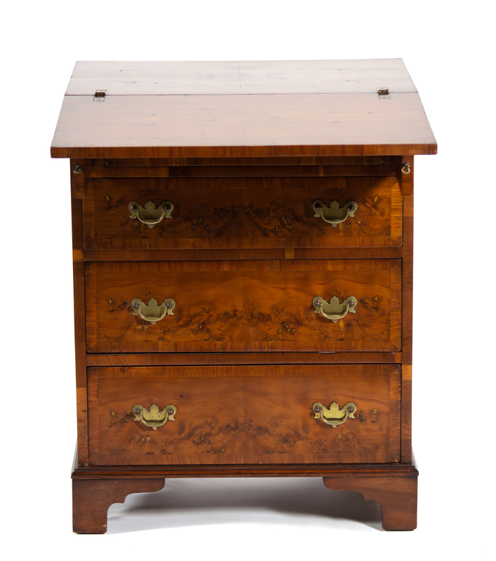 veneered with yew and crossbanded with mahogany.