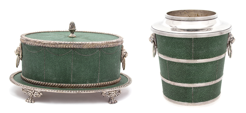 A Shagreen Wine Bucket Height of wine bucket 9 x diameter 8 inches.