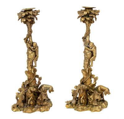of bocage form with three hounds on base and a monkey and snake climbing.