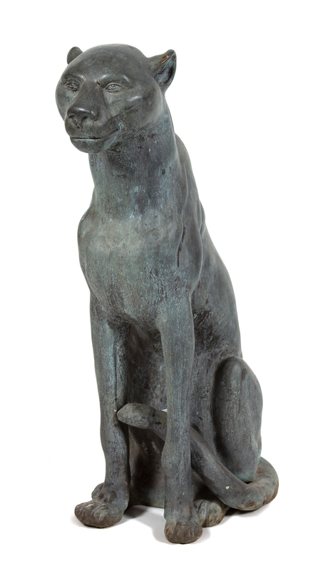 A Bronze Figure of a Seated Leopard Height 37 x width 13 x depth 16 1/2 inches.
