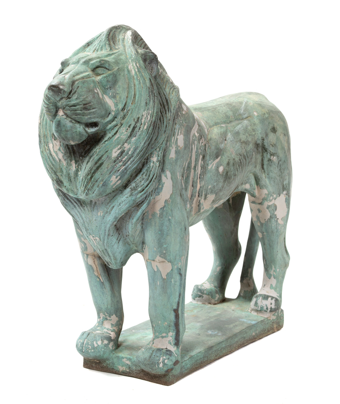 A Bronze Figure of a Standing Lion Height 25 1/2 x length 31 x width 11 inches.