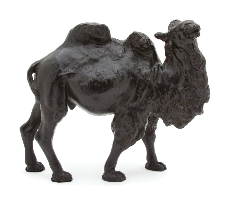 A Bronze Model of a Bactrian Camel Height 9 1/2 x length 12 1/2 inches.