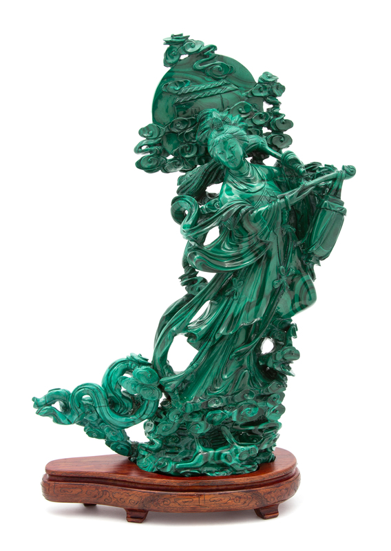 A Chinese Carved Malachite Figure of an Immortal Height 12 1/2 x width 9 x depth 3 1/2 inches.