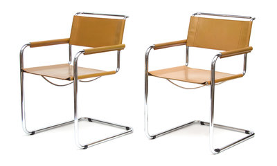 A Set of Six Italian Leather and Chrome Armchairs Height 34 inches.