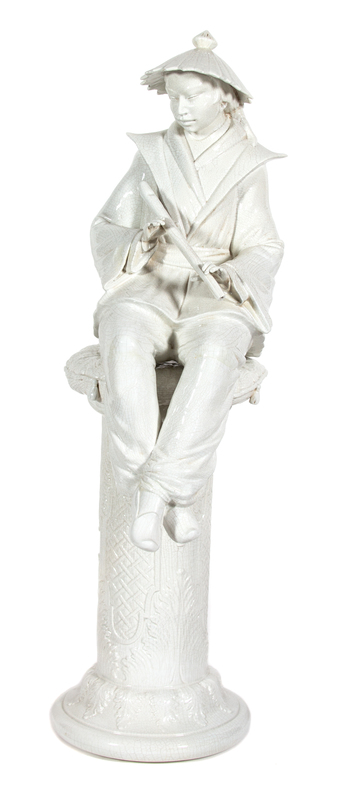 A Chinese Blanc de Chine Seated Figure on Base Height 54 x width 15 x depth 20 inches.