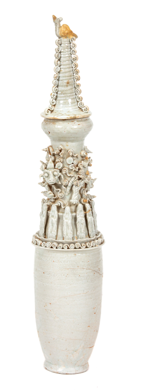 A Chinese Glazed Pottery Funerary Urn Height 26 1/2 inches.