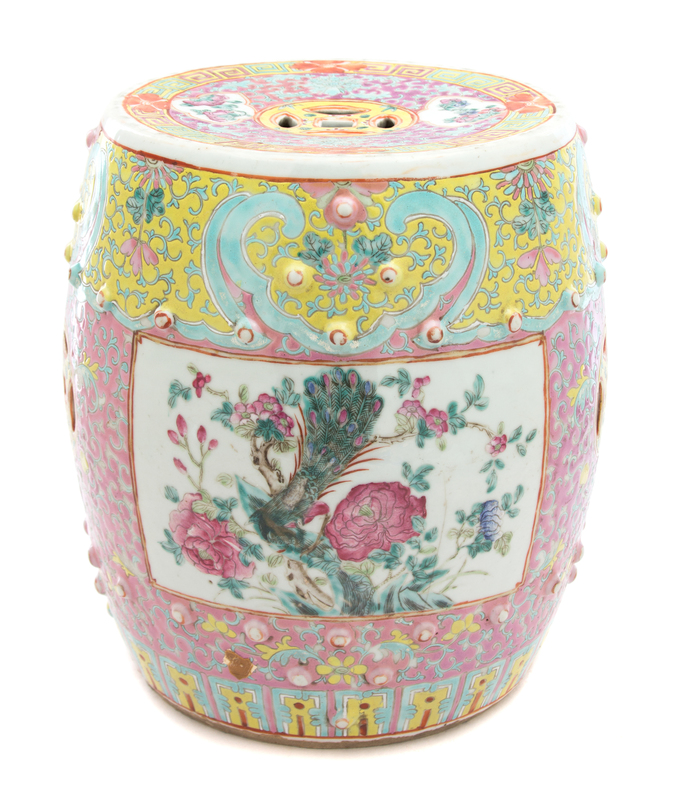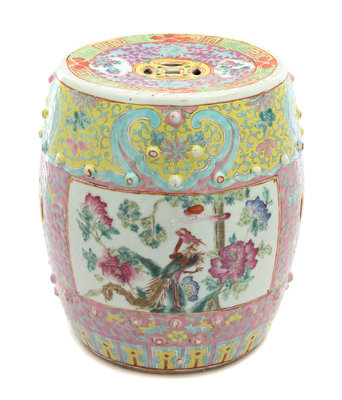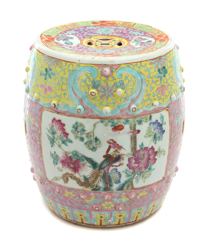 A Chinese Ceramic Garden Seat Height 12 x diameter 10 inches.