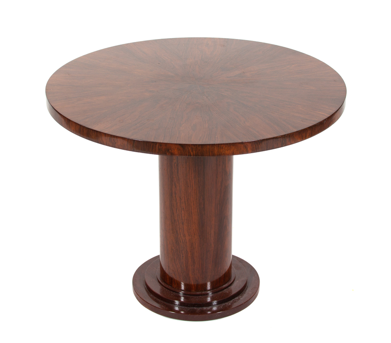 An Art Deco Style Rosewood Veneered Side Table Height 21 1/2 x diameter 27 1/2 inches.