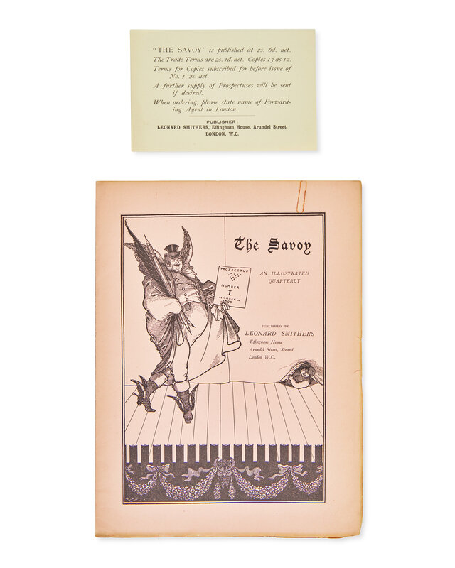 Lot includes a printed prospectus for The Savoy, dated November 1895. Publisher's stiff printed pink wrappers; "John Bull" version. Lasner 103A