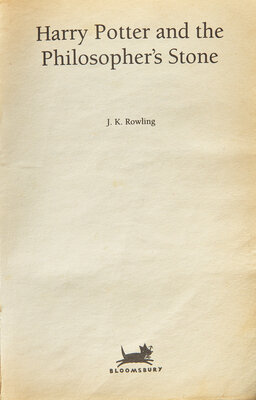 (London): Bloomsbury, (1997). First paperback edition, first impression (with full number line on copyright page descending from 10-1, and "1 wand" repeated on p. 53). 8vo. 223 pp. Publisher's stiff pictorial wrappers, rear wrapper with misspelt "Philospher's", worn and creased, acetate lifting at some edges, cocked; ownership inscription on inner front wrapper; light soiling on half-title and title-page; sheets toned, largely in margins (as usual); scattered creasing in corners. Errington A1(aa)