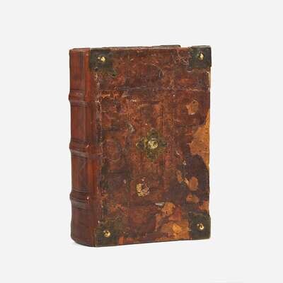 (Lyon): Jean Pivard, 29, Jan. 1500/01. 4to, 10 3/4 x 7 1/4 in. (273 x 184 mm). ff. (17), 382, (33); lacking final blank (dd10). With the alphabetical table by Gabriel Brunus at front. Gothic type in two and three columns. Full contemporary brown calf over wooden boards, stamped in blind, contemporary brass ornaments; rebacked; leather dry and cracked; scattered worming on front and rear boards, loss to calf in same; all edges trimmed; extensive contemporary and near-contemporary ownership inscriptions on title-page (many crossed out), circular ink stamp at top of same; scattered marginalia; light to moderate soiling in text margins; scattered light to moderate dampstaining along top and fore-edges; worming at center of ff. CCCXIX-CCCXXXIX; dd4-dd6 at rear sprung; tear in gutter of dd8 at rear; bottom edge of dd9 at rear excised. ISTC ib00604000; GW 4281; Goff B604; Bod-Inc: B-312; Copinger 120