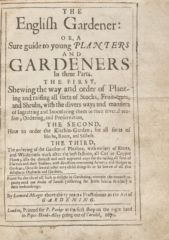 First edition of Leonard Meager's popular gardening handbook. "Meager's work is written in this same vein of appreciation for the homely type of garden, and is a happy reflection of his satisfaction in having had the privilege of working for thirty years at the gardening tasks he loved so well; his book was popular, and republished a number of times during the 17th century and on into the 18th." (Hunt)