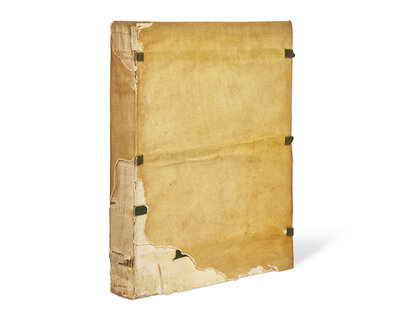 Hammersmith: Kelmscott Press, May 25, 1895. First edition (one of only 200 copies). 4to. (iv), 254, (4) pp. Printed in Troy type in black and red. Illustrated with two woodcuts, after designs by Sir Edward Burne-Jones, each within full-page woodcut borders, as well as numerous partial woodcut borders and woodcut initials. Original limp vellum, spine stamped in gilt, remnants of green silk ties, spine largely perished with loss at bottom of front and rear board; light spotting to text. Peterson A34; Tomkinson 34