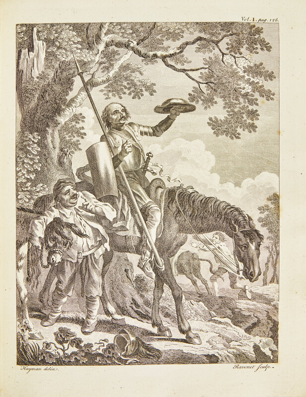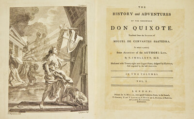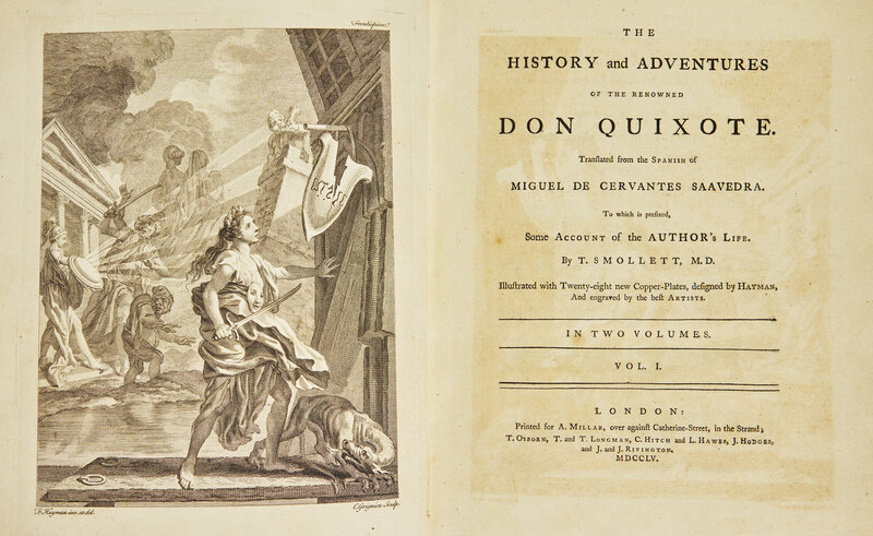 A very handsome copy of Tobias Smollett's celebrated English translation of Don Quixote, featuring Francis Hayman's fine engravings, his best work. Smollett's translation is the fifth English-language translation, and is preceded by Thomas Shelton's (1612 and 1620), John Phillips' (1687), Peter Motteux's (1700-03), and Charles Jervas' (1742) editions.