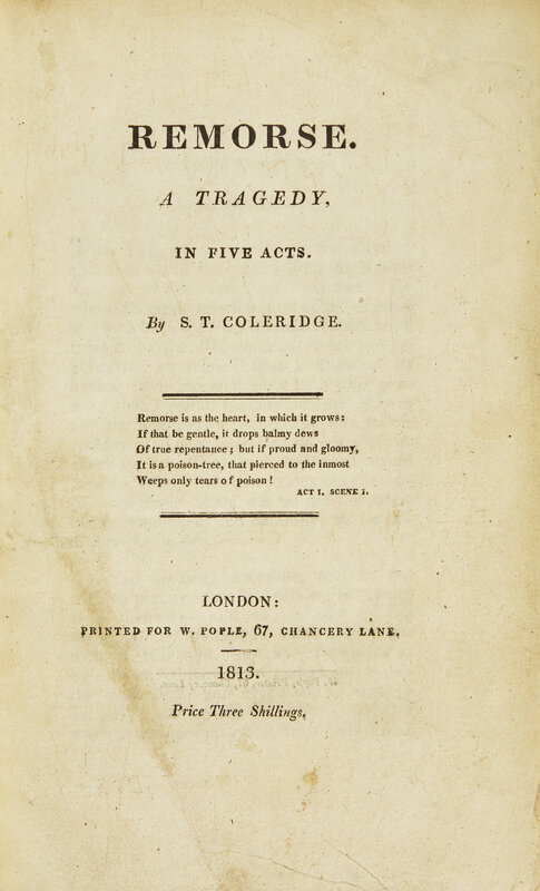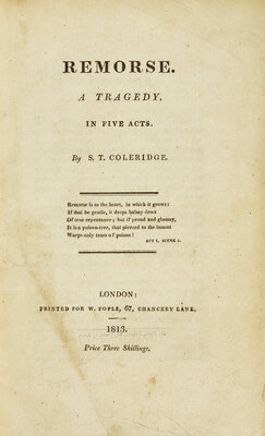 [Literature] Coleridge, S(amuel). T(aylor). Remorse. A Tragedy, In Five Acts