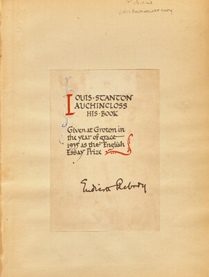 First edition of Dryden's adaptation of Antony and Cleopatra. From the library of American author Louis Auchincloss (1917-2010), chronicler of America's upper society. His most famous novel was The Rector of Justin (1964) and a finalist for the National Book Award. That work was inspired by his years at Groton School, where he was awarded this book as a prize in 1935. Groton's headmaster, Endicott Peabody, who awarded this prize to Auchincloss, is often assumed to be the inspiration for that novel's titular character, Reverend Francis Prescott.