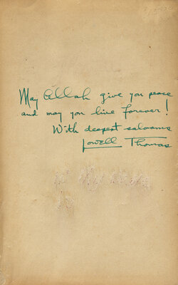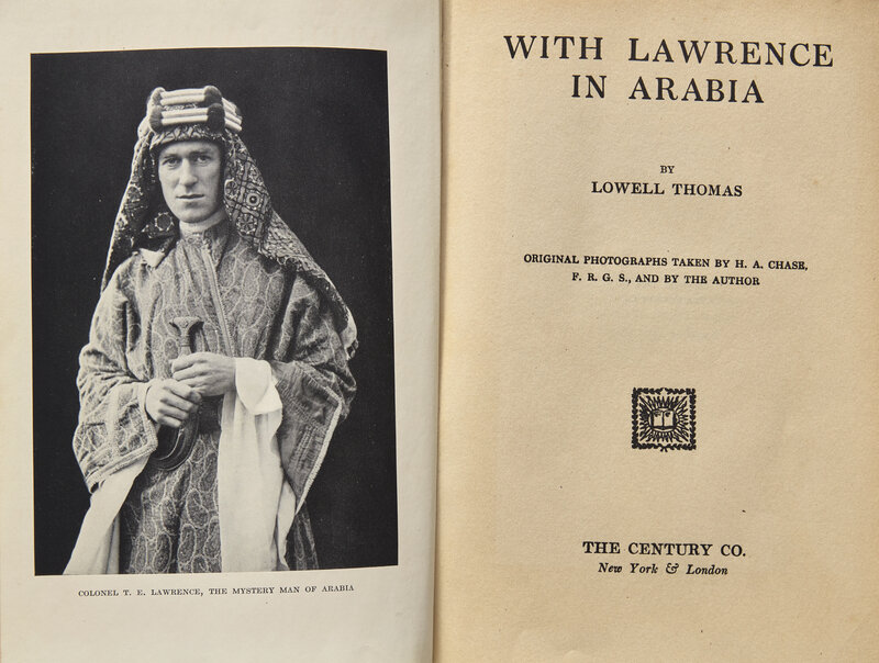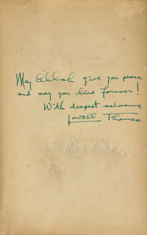 New York & London: The Century Co., (1924). First edition. Inscribed by Lowell on front free endpaper: "May Allah give you peace and may you live forever! With deepest salaams Lowell Thomas". Publisher's pictorial orange cloth, worn and soiled; in supplied dust-jacket from the Star Books reprint.