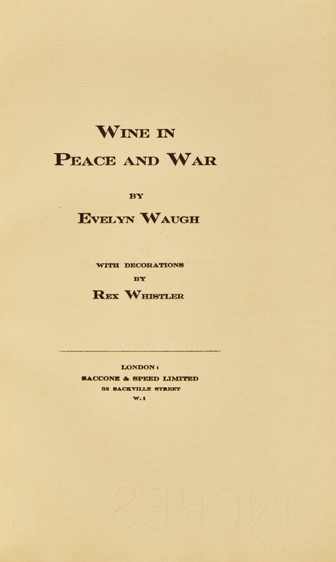 Rare signed limited edition by Evelyn Waugh. Waugh was commissioned to produce this work by Prince Vsevolod Ivanovich of Russia (the dedicatee), who was a director for wine merchants Saccone and Speed, for the Prince's distinguished clientele. For compensation, Waugh was paid in advance with a box of Jerez and two burgundies, and then two dozen bottles of 1928 Roederer champagne.