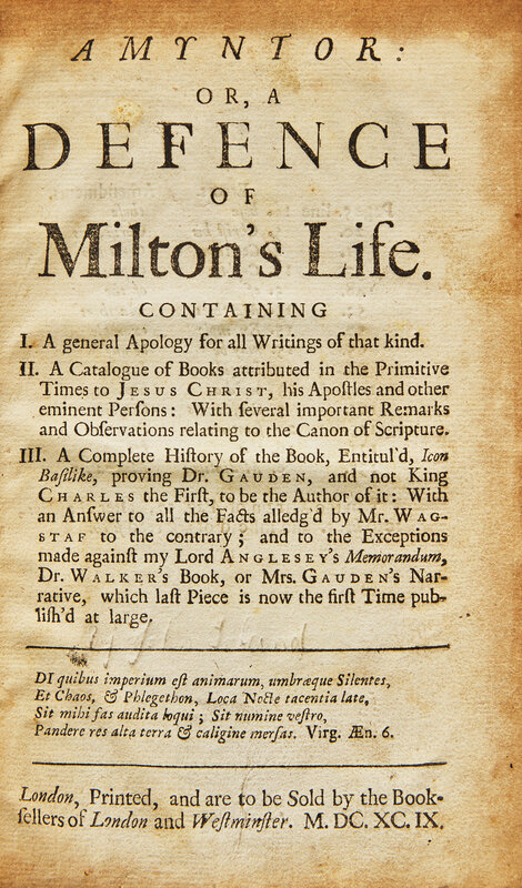 Amyntor: Or, a Defence of Milton's Life...