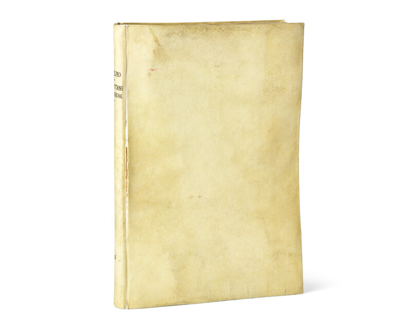 Venice: Francesco Senese, 1562. Second edition. Folio. (xii), 347 pp. Illustrated with woodcut device on title-page, woodcut initials, in-text and some full-page woodcut diagrams, as well as in-text musical scores. Full limp vellum, title in manuscript on spine, split in front joint; all edges trimmed; contemporary ownership inscriptions on title-page (one partially erased); light dampstaining in top edge and top corner of several leaves (largely at front); scattered minor spotting to text; a few scattered marginal repairs.