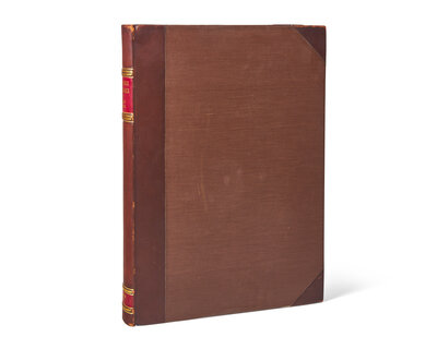 London: Printed for Robert Knaplock, and William and John Innys; and Jacob Tonson, 1724. First folio edition. Folio. (xii), lxxvii, (i), 194 pp.; two leaves of Preface (B1-2) bound out of order, appearing following a2. Title-page printed in red and in black. Illustrated with an engraved frontispiece, double-page engraved table, 67 numbered engraved plates (Plate XIII in two states), and numerous in-text engravings as well as engraved initials, and head- and tail-pieces. Modern three-quarter brown morocco over brown cloth-covered boards, red morocco spine labels, stamped in gilt, scattered wear along extremities and joints; red speckled edges; frontispiece repaired on verso edges, wear and soiling to same; dampstaining along fore-edge of title-page, soiling to same; soiling and wear along edges of most prelims, including repair in lower fore-edge of C1; scattered soiling in spotting, largely confined to margins; bookseller's ticket at bottom rear paste-down ("The Sign of the Three Candles Ltd, Dublin"). ESTC T132917; Heirs to Hippocrates 723; Norman 530; Osler 2384; Choulant-Frank, p. 253
