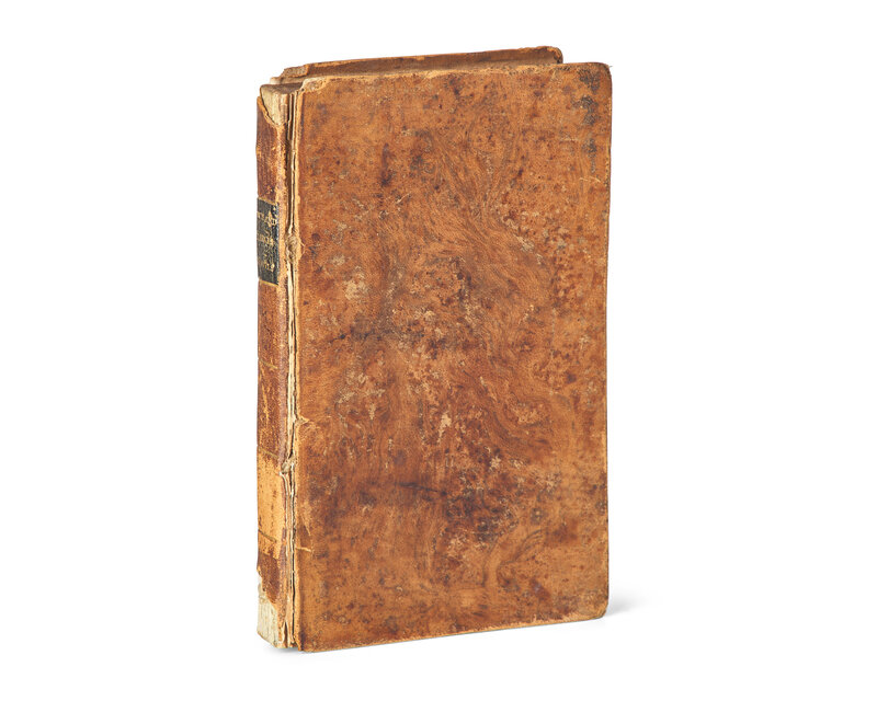 Baltimore: Printed and Published by P. Mauro, 1813. Reprint of the 1812 Philadelphia edition. 12mo. xi, (i), (13)-266 pp. Illustrated with two frontispiece portraits of Lewis and Clark, as well as three plates ("The Bear Pursuing His Assailant", "A View of the Washita", "An Indian destined to Death"). Full contemporary tree calf, morocco spine label, stamped in gilt; front board detached but cords holding; rear joint cracked; extremities and boards rubbed; losses at spine ends; all edges trimmed; ownership inscription in pencil on front free endpaper of Mann S. Valentine, dated 1882; text leaves moderately to heavily darkened; moderate to heavy offsetting; spotting; ink stamp of The Valentine Museum on rear paste-down. Wagner-Camp 8:7; Sabin 24508; Graff 1331; Coues, pp. cxv-cxvi; Thwaites, pp. lxix-lxx; Pilling, Algonquian 1299
