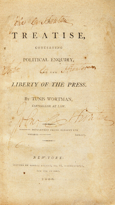 [Americana] Wortman, Tunis. A Treatise, Concerning Political Enquiry, and the Liberty of the Press
