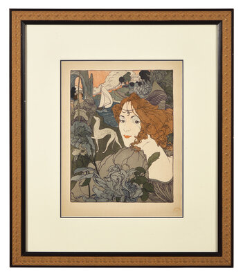 (Paris, 1897). Color lithograph, sheet: 15 7/8 x 12 1/8 in. (403 x 308 mm). Extracted from L'Estampe moderne (No. 2); blindstamp in lower right corner. Wear along left edge from when bound. In mat and in frame, 25 1/4 x 21 7/8 in. (641 x 556 mm).