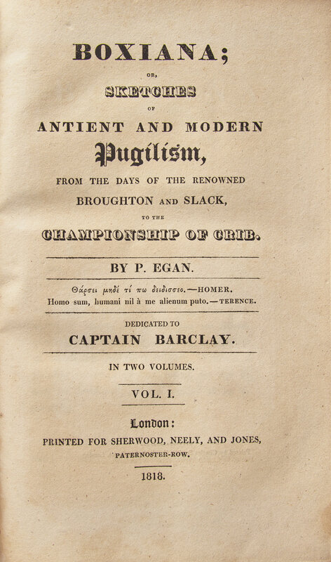 [Boxing] Egan, P(ierce), and John Babcock. Boxiana...