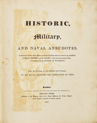 [British Isles] Historic, Military, and Naval Anecdotes, Of Personal Valour, Bravery, and particular Incidents which occurred to the Armies of Great Britain and her Allies, in the last long-contested War, terminating with the Battle of Waterloo