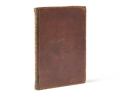 London: Printed by James Flesher for Daniel Pakeman, and Laurence Chapman, 1655. First edition. 4to. (vi), 109, (1, errata) pp. Title-page printed in red and in black. Illustrated with the rare engraved frontispiece portrait of Jones by Hollar after Van Dyck, seven plates (including three folding), and three full-page charts. Full 18th-century brown calf, rebacked with original spine laid down, stamped in gilt, extremities and boards scuffed and scratched, head of spine worn; edges stained yellow; original marbled endpapers; spotting to frontispiece with small repair in upper corner; spotting to title-page, repair in bottom corner of same, and matching small repair in upper corner; very small hole in upper corner of A3-B1; repair in upper corner B4; second double-page plate bound upside down; scattered light foxing and spotting to text; light wear at plate folds; scattered contemporary marginalia, as well as modern pencil marginalia. Lowndes 1225; Wing J-954