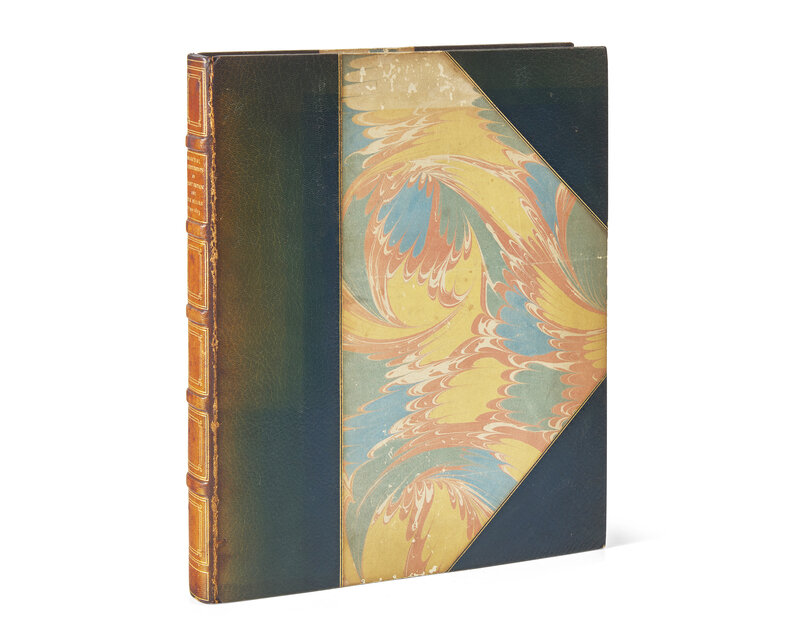 London: Printed for J(ames)s. Jenkins, for L. Harrison, (1814-15). First edition, large paper copy. 4to. Illustrated with an engraved hand-colored dedication to the Duke of Wellington, hand-colored aquatint frontispiece, engraved title-page, and 51 hand-colored aquatint plates (all but three on India paper; most plates on J. Whatman watermarked paper, dated 1812; one non-India paper with J. Whatman watermark, dated 1831). With letterpress dedication, contents, subscriber's list, and descriptive text leaves (on J. Whatman watermarked paper, dated 1812). Three-quarter navy blue levant over marbled paper-covered boards, stamped in gilt, spine browned, boards unevenly faded, joints worn; all edges gilt; scattered light marginal soiling. From the family libraries of Americana collectors and bibliophiles Amor L. and Zachary T. Hollingsworth. Abbey, Life 366; Tooley, pp. 152-153