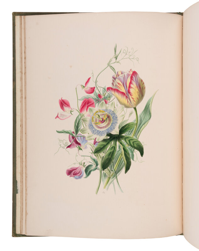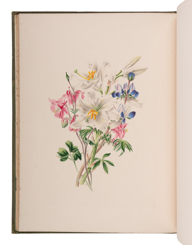 Small folio. Hand-color lithographed additional half-title, 11 hand-color lithographed plates heightened with gum arabic. (Light interior spotting, mainly to title-page). Original green cloth gilt stamped with ornamental vase of flowers on both covers, spine gilt-stamped and lettered, all edges gilt (some staining to upper cover, rebacked preserving original spine).