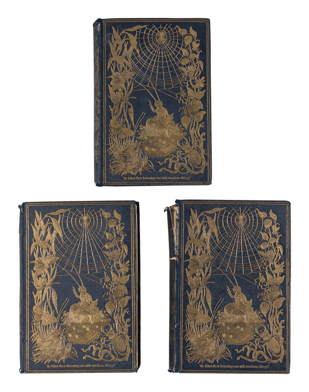 FIRST EDITION. Published under the pseudonym "Acheta Domestica" (the scientific name for "house cricket"), Episodes of Insect Life illustrates the full entomological year in the life of an insect, with the first volume representing the period from January-April, the second May-August, and the third the rest of the year. Nissen ZBI 662. See McClean, Victorian Publishers' Book-Bindings, p.42.