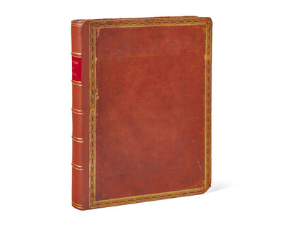 First edition. 4to. With half-title, List of Subscribers, plate index, and ad leaf. Illustrated with a hand-colored dedication leaf and 48 hand-colored engraved plates; plate 37 in first state, others in second state; many plates with tissue guards; some plates with J. Whatman watermark. One Whatman watermark dated 1801, and one plate with W. Eglas watermark, dated 1796. Full contemporary diced russia, stamped in blind and in gilt, rebacked, extremities rubbed and worn, corners worn, boards rubbed; all edges gilt; marbled endpapers; many text leaves with watermark date of 1802, two text leaves with 1794 watermark date; front and rear hinges worn; scattered minor spotting to text and plates leaves; scattered minor soiling; offsetting from plates; gift label on front and rear paste-downs; old cataloguer's notes in pencil on front blank; ink stamp of Moore Institute School of Design Library at bottom of title-page. Abbey, Travel 534; Tooley 18