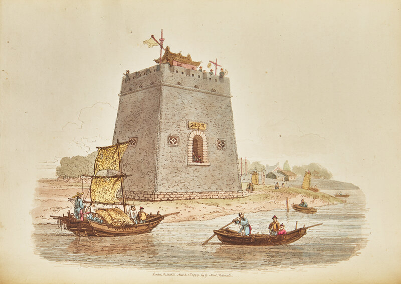 London: Printed for William Miller by W. Bulmer and Co., 1801. First edition. With additional title-page in French; text printed in English and in French. Illustrated with 22 hand-colored engraved plates by Dadley, after designs by Pu-Qua of Canton; seven plates with watermark dated 1796, some with "E & P" (Edmeads & Pine) watermark. Four text leaves with 1796 watermark date; scattered marginal soiling to text and plates; ink stamp of Moore Institute School of Design Library at bottom verso of final text leaf. Abbey, Travel 532 (of the 1804 reprint)