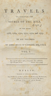 [TRAVEL & EXPLORATION] BRUCE, James. Travels to Discover the Source of the Nile... Dublin: Printed by William Sleater, For P. Wogan, L. White, P. Byrne, et al., 1790.