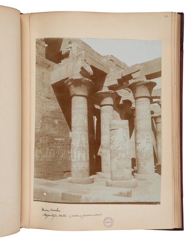 Folio. 54 large-format glossy sepia-toned photographs with accompanying notations and some additional clippings pasted onto leaves opposite photographs; together mounted and bound in 20th century quarter morocco gilt (rubbing, sunning to spine). Provenance: East Sussex County Library (institutional stamps), Hove Public Library (institutional stamps).