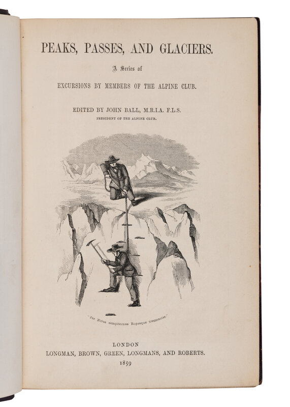 1) BALL, John, editor. Peaks, Passes, and Glaciers. London: Longman, Brown, Green, Longmans, and Roberts, 1859. Contemporary half calf with top edges gilt, others uncut. FIRST EDITION.