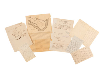 BARLOW, Robert. Autograph document signed ("Rob Barlow"), 19 June 1793. 1p., oblong 8vo. Certifies that a sailor served under his command on board the Porcupine. -- PALMER, John C. Partially printed document signed ("John C. Palmer"), 6 September 1872. 1p., folio, on Navy Department letterhead, accomplished in manuscript. Orders for William Grier to report to Surgeon General Palmer. -- BARROW, John. Autograph letter signed ("John Barrow"), to Captain Dillon, n.d. 1p., 8vo, old folds. Did not receive the captain's letter until long after his departure. -- GREELY, Adolphus Washington. Cut signature ("AW Greely"), 20 November 1886. On cardstock. -- DuCHAILLU, Paul Belloni. Autograph letter signed ("Paul de DuChauillu"), New York, 31 March 1897. 3pp., 8vo, old folds. -- NEWCOMB, Raymond Lee. Clipped signature. With the caption: "Jeanette". -- And approximately 20 others, primarily autograph letters signed and clipped signatures, various dates spanning the 18th and 20th centuries, sheets 10 x 8 in. or smaller. Condition varies but is generally good.