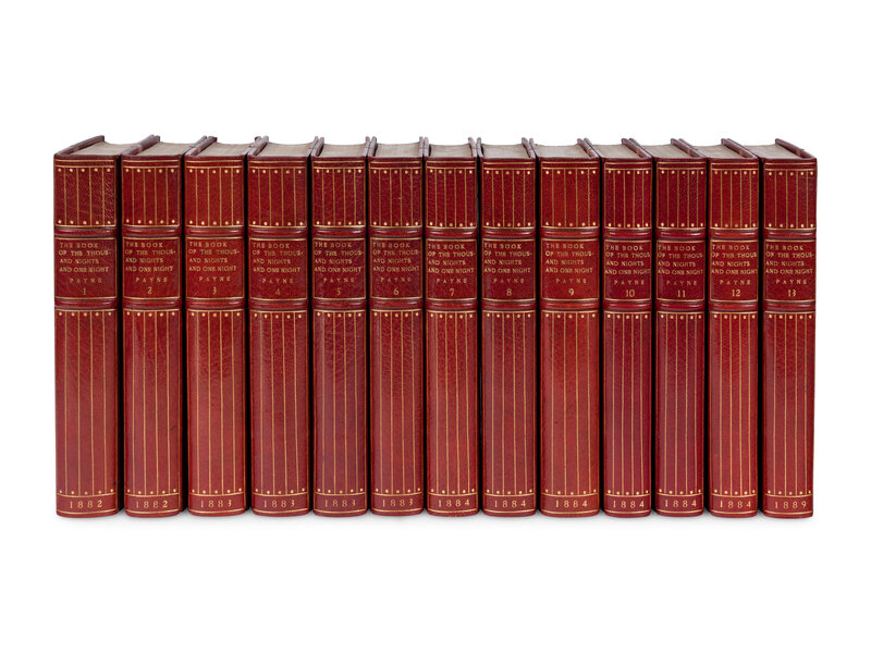 [BINDINGS]. PAYNE, John (1842-1916), translator. The Book of the Thousand Nights and One Night... [with:] Tales from the Arabic. [and:] Alaeddin and the Enchanted Lamp. London Villon Society 1882-1889.