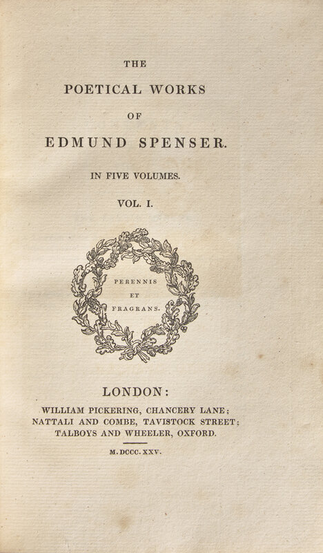 [BINDINGS]. SPENSER, Edmund. The Poetical Works of Edmund Spenser. London: William Pickering, 1825.