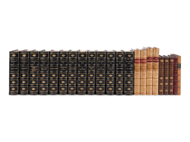1) Pendennis. London: Bradbury & Evans, 1849. 2 volumes. Later full morocco bound by Sangorski & Sutcliffe for Marshall Field & Company (very light sunning to spines); slipcase. FIRST EDITION.