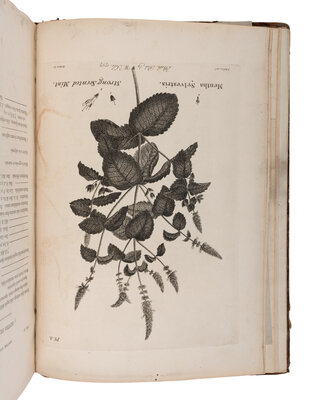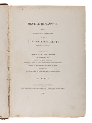 SOLE, William. Menthae Britannicae: being a New Botanical Arrangement of all the British Mints. Bath: R.Cruttwell, 1798. 4to. 24 engraved plates; 5 specimens laid in. Contemporary half calf.
