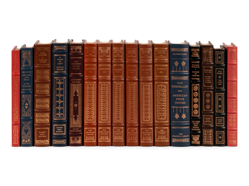And 63 others. Together, 79 works in 112 volumes, all 8vo and all published by the Franklin Library and bound in original leather gilt. Condition generally very fine.