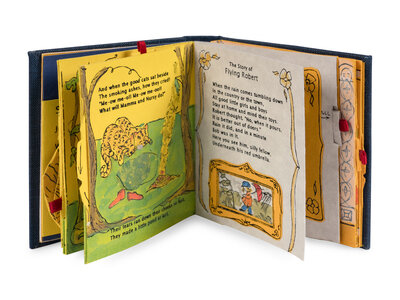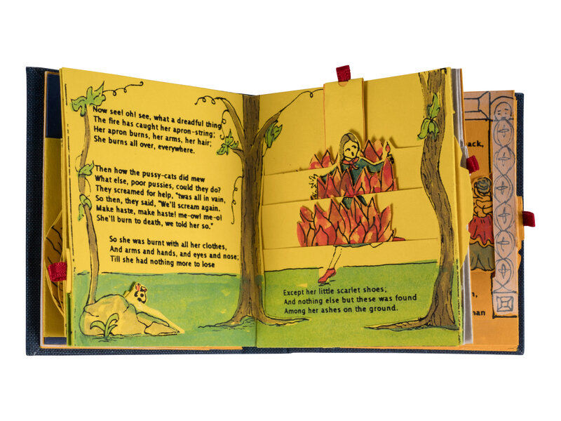64mo or miniature. Numerous moveable illustrations, pop-ups, and cut-outs, all hand-colored. Bound accordion-style in original blue cloth; slipcase with mounted decorations as issued.