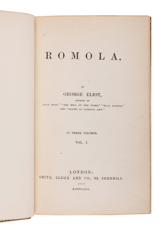 EVANS, Mary Ann ("George Eliot") (1819-1880). Romola. London: Smith, Elder and Co., 1863.