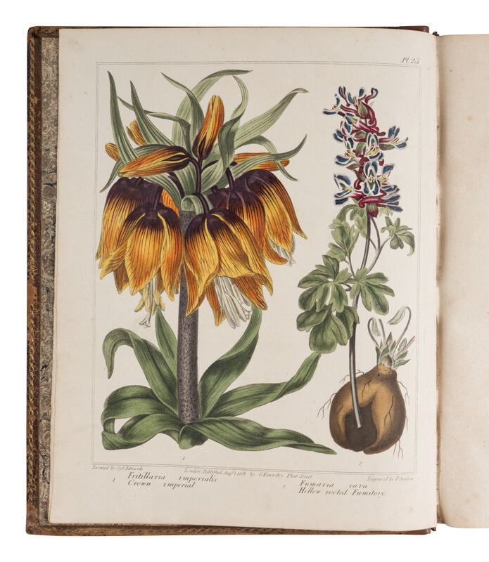 FIRST APPEARANCE OF EDWARDS' PLATES which were subsequently re-issued as The New Botanic Garden and The New Flora Britannica (both London, 1812). BM(NH) III, p.1207; Cleveland Collections 718; Dunthorne 106; Great Flower Books, p.115; Nissen, BBI 479.